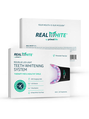 Our Real White Gel is the only whitening product that whitens your teeth and makes both your teeth and gums healthier while working its magic!