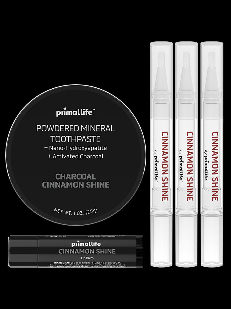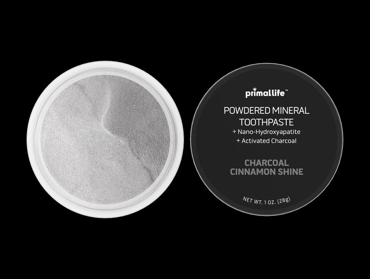 A bold fusion of activated charcoal, enamel-rebuilding nano-hydroxyapatite, mineral-rich clays, and cinnamon oil. Lifts surface stains, strengthens enamel, and helps fight bad-breath bacteria, all without peroxide or synthetic foaming agents.