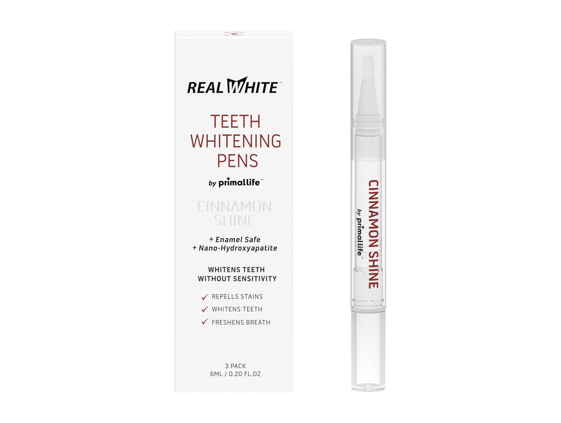 Our Real White Teeth Whitening Pens combine stain-fighting power with oral health support in a clean, cinnamon-spiced formula. No peroxide. No sensitivity. Just a brighter, healthier smile—anytime, anywhere.