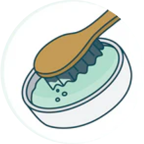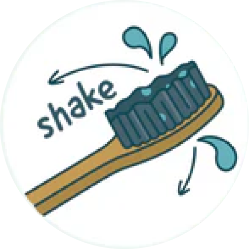 Wet toothbrush and shake off excess water. Dip the tip of the brush in toothpowder.