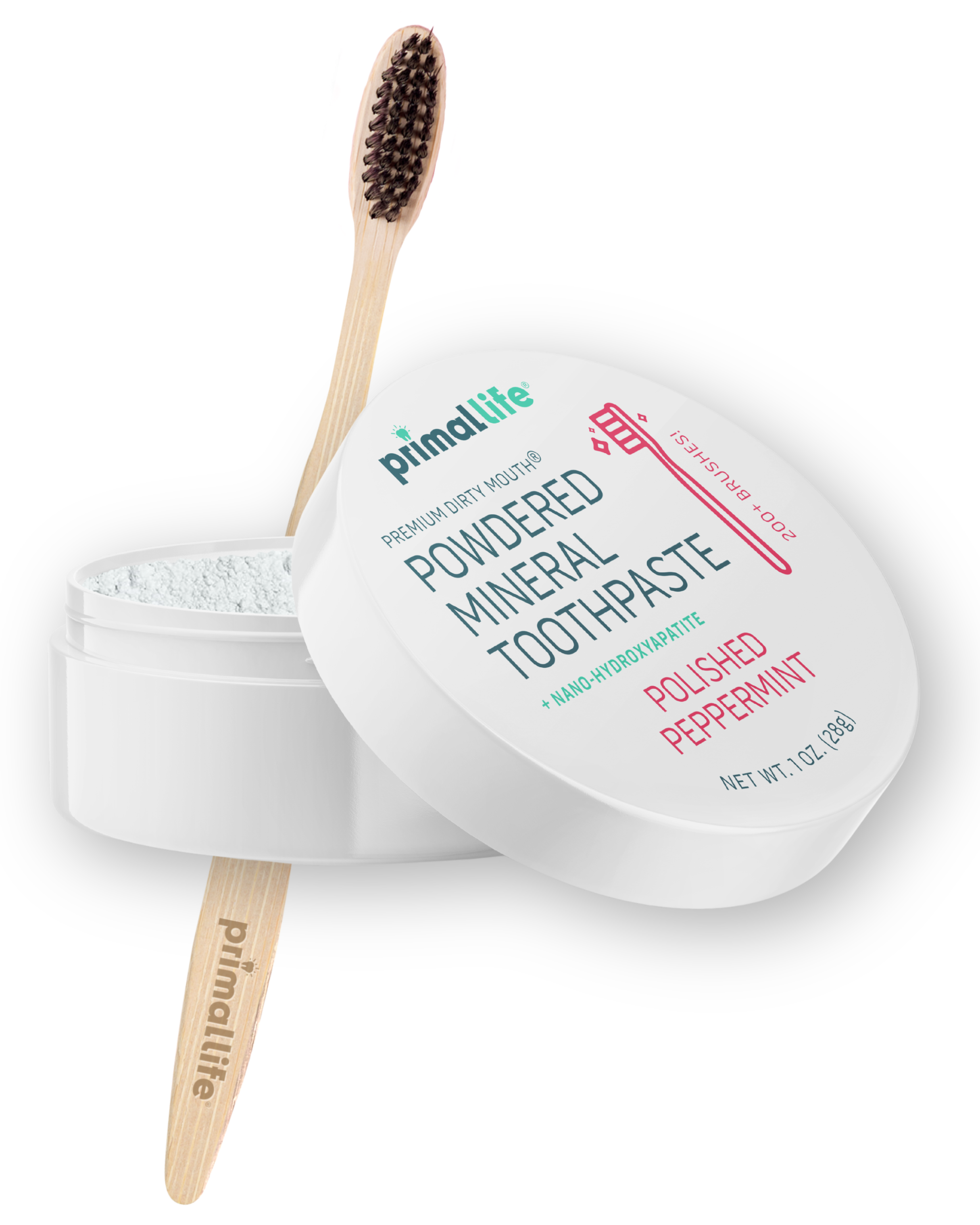 The Primal Life Organics Dirty Mouth Toothpowder is a bestseller for a reason! It’s formulated with cleansing, mineral-rich bentonite, kaolin, french green clays, and nano-hydroxyapatite to clean, whiten, and remineralize your teeth, so they are stronger, leaving you with an alkaline mouth that is resistant to cavities!